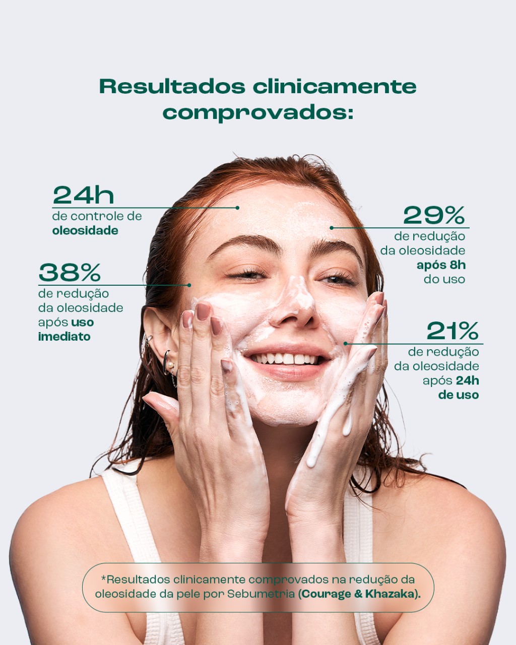 Esses resultados reforçam que a fórmula não apenas limpa, mas cuida e equilibra a pele de forma duradoura, garantindo o controle da oleosidade sem comprometer a hidratação natural.